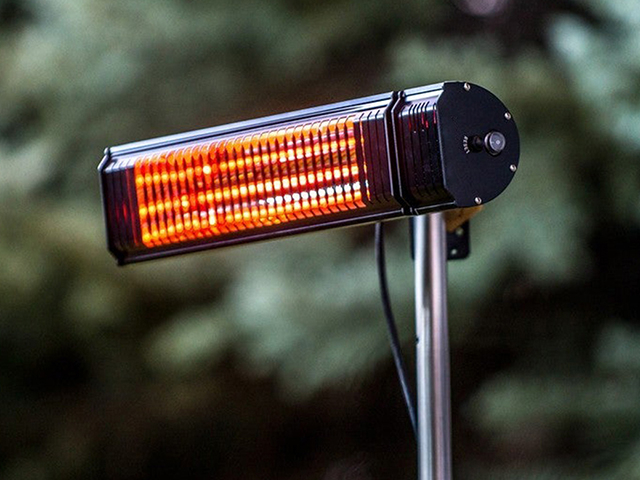 The solid designed 2.0KW patio heater can be controlled with either a remote control or a free app on the smartphone.